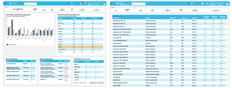 BuildFlow Insight analyserar dagligen prissättningen på ca 5 miljoner artiklar vilket ger en möjlighet att enkelt och effektivt få kontroll på egna och andras nivåer samt att se på vilka trender som finns i marknaden. Med insikter i realtid ges förutsättningar till att arbeta med prissättning och prispositionering som ett faktiskt verktyg för att öka försäljningen och för att skapa hävstångseffekter på marginalen.
